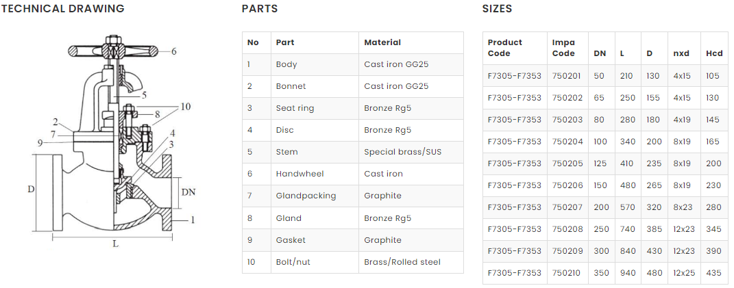 JIS F7305 GLOBE VALVE STRAIGHT CAST IRON – 5K
